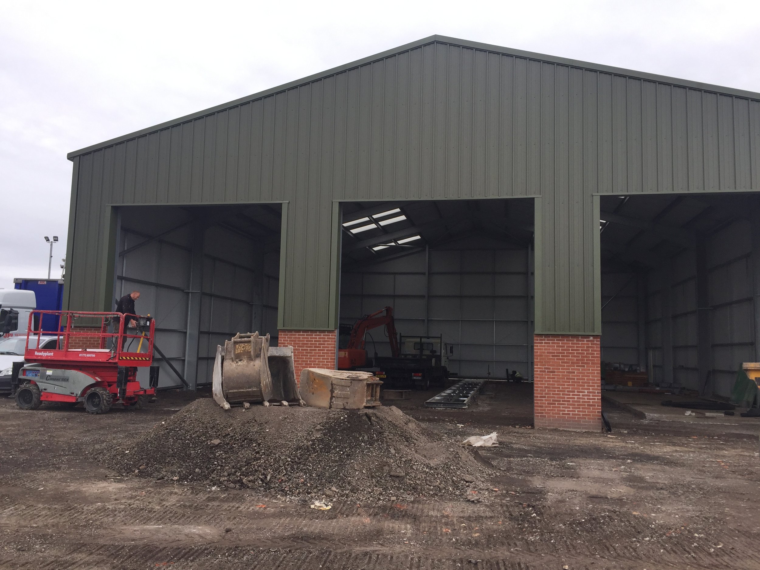 We were contracted to supply and clad this 6000sqft workshop building with a galvanized steel portal frame and insulated cladding panels. Later additions were a steel partition and office to the MOT test lane.